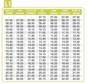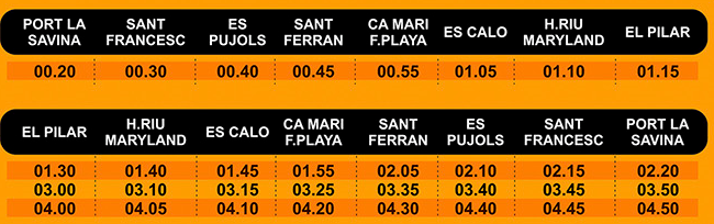 Hay que tener en cuenta que el último viaje desde La Savina (22:20) pasa por Es Pujols.