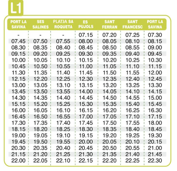 Lines with departure and arrival at the port and that has stops in: La Savina, Sant Francesc, Sant Ferran, Es Pujols, Sant Ferran, Es Caló, El pilar La Mola and La Savina.