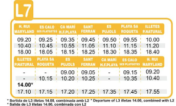 Additionally, to get around Formentera by bus, you have line 7 from Hotel Riu La Mola/Insotel Maryland to Illetes Beach.